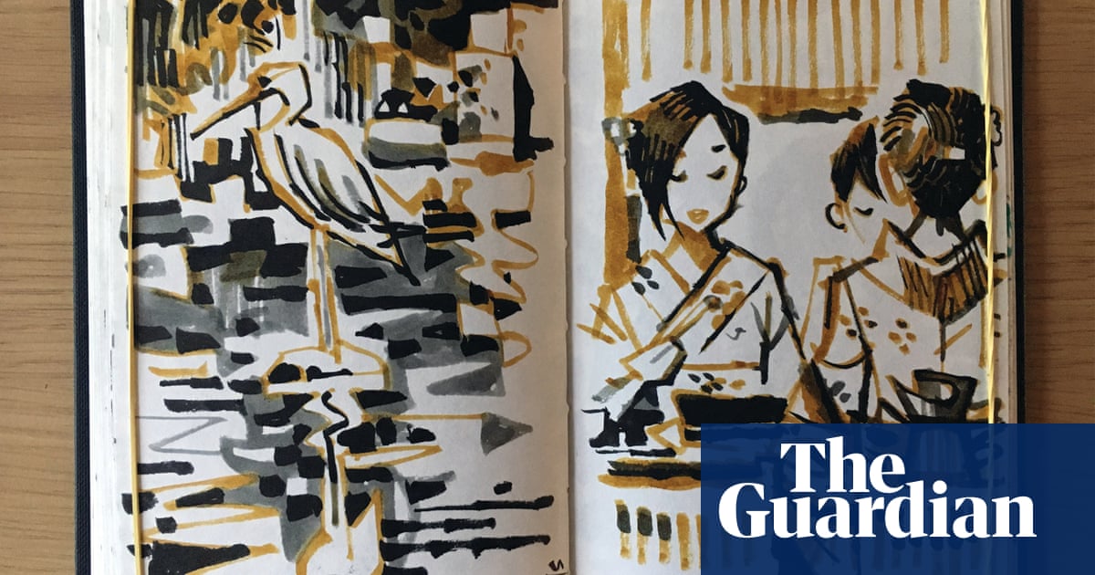 I’ve always taken a sketchbook on my travels … and a major part of my work as an illustrator is based on travel drawings. I see what catches my eye, then sit on a bench or at a cafe window and stay for about an hour. I take two sketchbooks: an A6 one that fits in my pocket and an A4 watercolour sketchbook that I use if I have more time. In Britain, no one pays me any notice. In, say, Japan, people are more likely to come and talk or to stand at a respectful distance and watch.