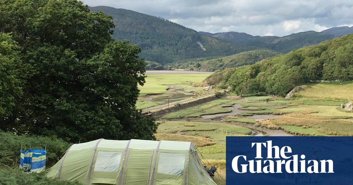 Twenty camping pitches and two safari tents sit among wildflower meadows on a 200-hectare farm outside the small village of Trefor on the northern coast of the Llŷn Area of Outstanding Natural Beauty. There’s a treehouse and rope swings for the kids, while the big draw for grown-ups is its seasonal kitchen-garden restaurant for breakfast and lunch every day, and dinner six nights a week (drinks and cocktails are garnished with herbs from the garden). There’s a private shingle beach and you can hire paddleboards and kayaks at the nearby sandy beaches of Porth Iago or Aberdaron. Take bus 30 from Caernarfon or Pwllheli to Ganolfan, from where it’s just over a half-mile walk down the lane to the site.